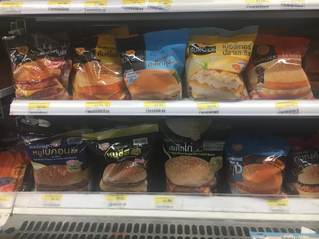 Noodle dishes, rice bowls, Thai curries, and even microwaveable hamburgers line the shelves for around 40 baht each. Staff will microwave any meal and provide hot water for noodles. Just point and ask. Perfect when you’re tired of expensive restaurants or need a boost at 2 am.