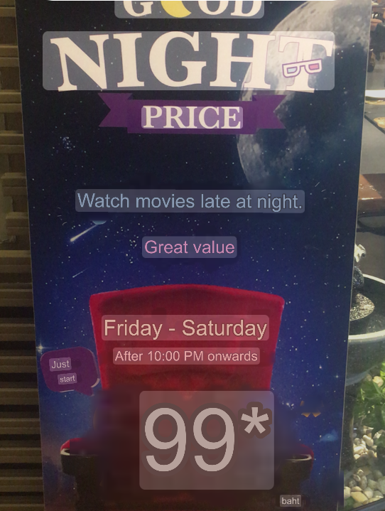 “TH” or Thai dubbed: The movie has been overdubbed into Thai language. These Thai-dubbed versions sometimes include English subtitles, though the translation quality can be questionable. Unless you speak Thai or don’t mind dubbed audio, avoid these screenings.