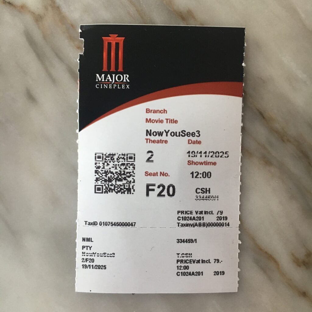 Regular pricing: Standard tickets typically run 120 to 140 baht for regular screenings, depending on the time of day and day of week. These prices align with the general range for Major Cineplex theaters across Thailand. There’s also a 99 baht ticket special on Friday and Saturdays for showings after 10 pm.