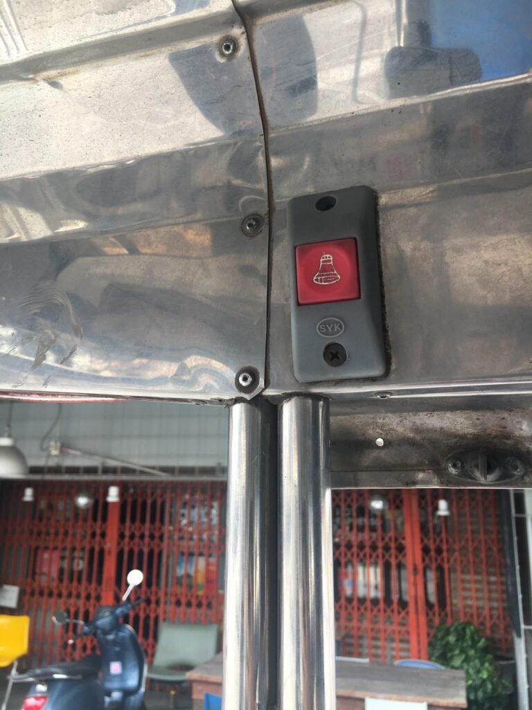 To use the baht bus, position yourself on the side of the road in your desired direction and hold your hand up to flag it down as it approaches. Observe others and you’ll learn quickly. Thai locals use a “palm down” waving motion. But beware: if a driver sees you and asks: “Where you go?” don’t get in. The chance is high that they want you to use it like a private taxi and could charge you 100 to 150+ baht. You can avoid this by not talking to the driver and simply entering the baht bus after it stops for you.