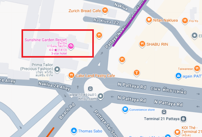 The North Pattaya (Naklua) baht bus route starts near Terminal 21 to Lan Pho Naklua Market. From Terminal 21, walk toward Dolphin Circle and take a right on Naklua Road. I typically stand in front of Sunshine Garden Resort. Lan Pho Naklua Market is worth checking out as well as a seaside park behind it named Naklua Chalermprakiat Park. On Naklua Road itself, you’ll pass through Pattaya’s “Little Germany” which has around 10 German restaurants on or near Naklua Road.